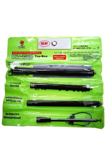 De COMET HFJ-350m Toy-Box is een zeer compacte 1,8 tot 52MHz antenne, welke zich uitermate leent voor portable gebruik.